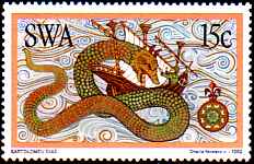 einem Dinosaurier ähnlich dargestellt, siehe linke Marke.