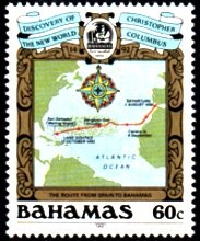 der Karibik, siehe linke Marke oben, der grünliche Bereich um die rote Columbusroute.