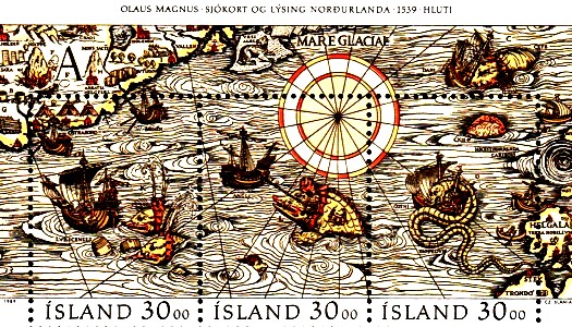 um eine Olaus Magnus Karte von 1572. Auf der rechten isländischen