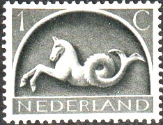 Dieses Pferd ist ein Mischwesen aus Fisch (Schwanz und Flossen unter den Hufen) und Pferd