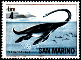 schlangenähnliches Säugetier mit langem Hals und Ruderschwanz erkannt haben.