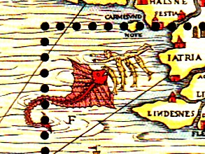 noch nichts erforscht war, wurden statt weißer Flecken schuppige Monster eingezeichnet.