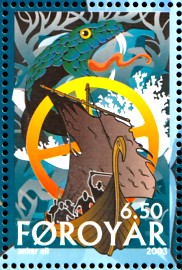 im Hintergrund die Midgardschlange, die ihm hilft. Sie wird allerdings von Thor (Donar),