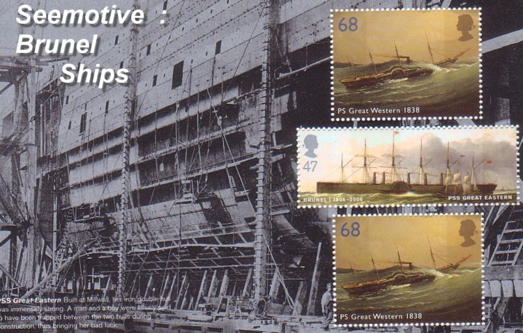 the paddle-wheel steamer "Great Western", the screw-driven steamship "Great Britain", and the huge steamship