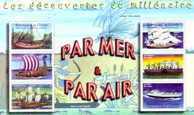 Guinee, Guinea, ein Block mit sechs Marken, 'par mer & par air', durch das Wasser und