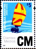 Argentinien, ein Satz mit sieben Marken zum Thema Sport, dabei dieses Segelboot mit