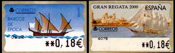 Espana, Spanien, zwei Neuausgaben von Automatenmarken bekannter Motive. links eine