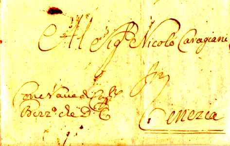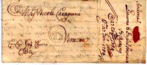 Ein Brief von Korfu nach Venedig 1718 mit dem Talisman (links unten):