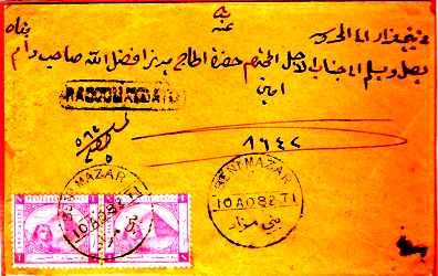 Ein ägyptischer Brief von 1882. Der Talisman, in Ägypten Buh genannt, besteht hier aus den arabischen