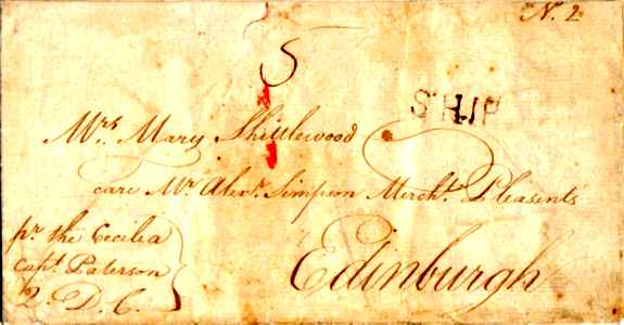 Ein Brief aus dem Jahre 1777 von Jamaica nach Edinburgh.