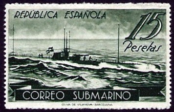 Auf der rechten Marke ist das peruanische U-Boot 'Ferre' zu sehen. Es wurde 1912