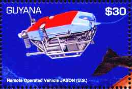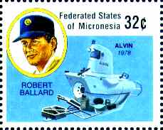 On this stamp we can see the best-known in oceanography, Dr. Robert Ballard.