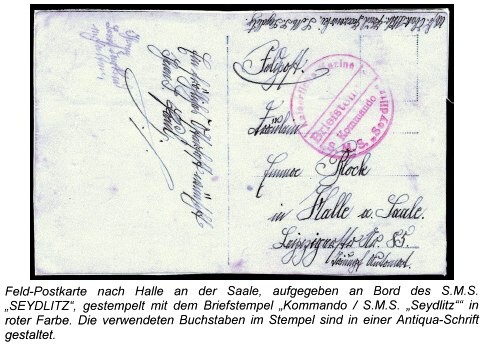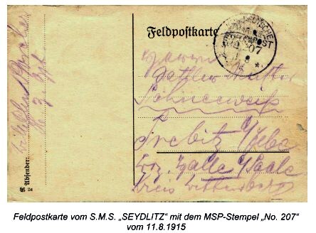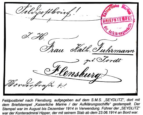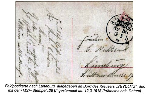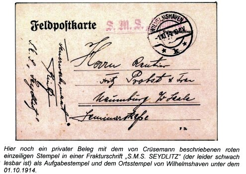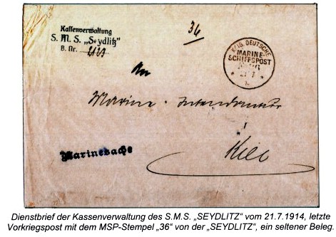 ELMSHORN Postaufgaben an Bord bis zum 7. Aug. 1914