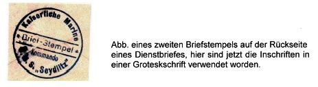 2. Aug. 1914 - 7. Nov. 1914 Postabgaben über die Versorgungsschiffe möglich, aber bisher nicht bekannt.