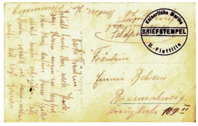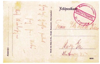 1916 der im Absender bezeichneten IV. UFlottille angehörte, und zwar der 3. UHalbflottille bis zur