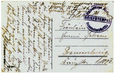 Interessanterweise wurde der Briefstempel nach der Beschriftung der Karte angebracht. Das bedeutet,