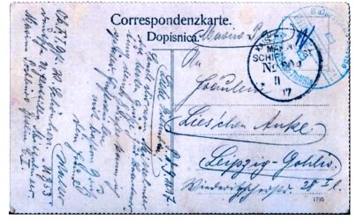 Geschrieben am 9. Nov. 1917, befördert über MSP 204 (Pola) mit dem blauen Briefstempel