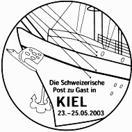 Im rechten Cachet steht "nach jahrelanger Sanierung wieder zurück in Kiel".