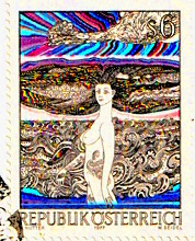 Auf der Marke ist das Bild "Donaumädchen" vom Wolfgangh Hutter abgebildet.