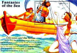 Sirenen. Odysseus liess sich an den Mast binden und seinen Gefährten wurden die Ohren mit Wachs verschlossen.