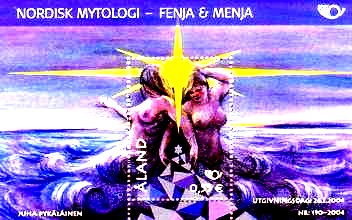 In den Sagen der Åland Inseln gibt es zwei weibliche Wesen, Fenja und Menja. Sie waren Sklavinnen am Hofe von