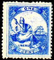 Links auf der liberianischen Marke sehen wir eine Frau, die die Verbildlichung der Freiheit (lat. liberia)