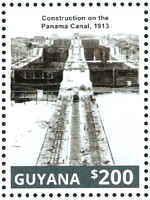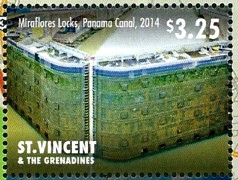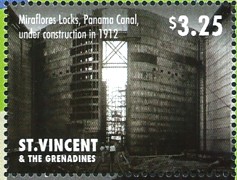 Auf der Marke sind die Pedro Miguel Schleusen zu sehen.