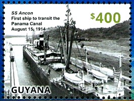 war der Dampfer 'Ancon', der hier auf den Marken zu sehen ist.