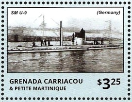 Auf der rechten Marke ist das peruanische U-Boot 'Ferre' zu sehen. Es wurde 1912