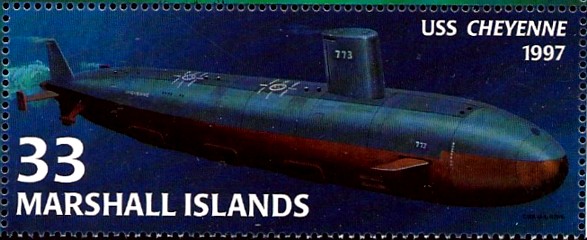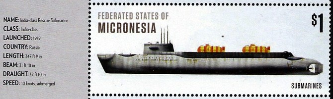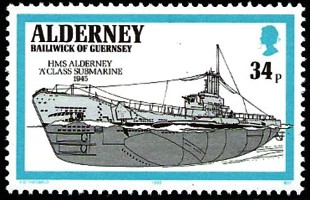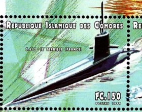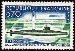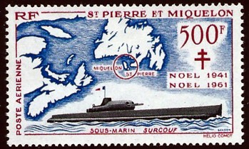 Auf der Marke ist der französische Unterseekreuzer 'Surcouf' abgebildet.