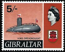britische Boot HMS 'Dreadnought', die 1960 vom Stapel lief. Sie wurde noch mit
