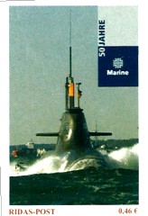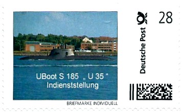 Auf der linken Marke wird das Ende vieler U-Boote im Zweiten Weltkrieg dargestellt.